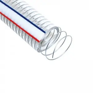 ПВХ-шланг со стальной проволокой, в который вставлена стальная проволока, легкий, прозрачный, хорошо адаптируется к суровым погодным условиям и отрицательному давлению, имеет малый радиус изгиба.
